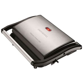 Completa e ideal para voce Possui chapas ajustaveis e antiaderentes, grelhando por igual os dois lados do alimento e ainda conta com coletor de gordura, facilitando a limpeza. Seu acabamento em Inox, traz sofisticacao e durabilidade para sua cozinha e sua alca fria garante maior seguranca durante utilizacao.