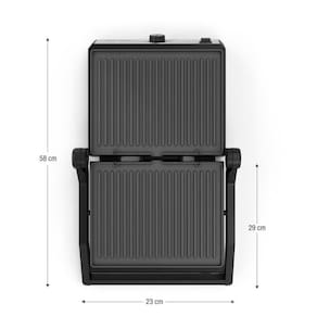 Utilize como grill ou sanduicheira e prepare alimentos deliciosos com agilidade. Além disso, suas chapas com dimensões de 290x230mm e abertura 180, permite grelhar carnes, legumes e muito mais, dos dois lados por igual e sem grudar, graças ao revestimento antiaderente Maxx Clean, que proporciona maior durabilidade e simplicidade na limpeza.