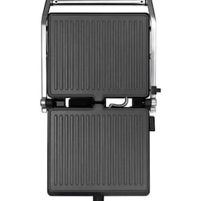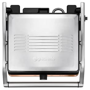 Grill e Sanduicheira Gradiente com alta potência, superfícies antiaderentes, parte superior regulável, controle de temperatura, design de alto padrão, bandeja coletora e trava de segurança.Termostato regulável