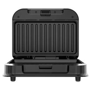 A sanduicheira conta com uma chapa superior com superfície tipo grill e chapa inferior lisa, ideal para o preparo uniforme de diversos alimentos. O revestimento antiaderente evita que os ingredientes grudem nas placas, facilitando a limpeza e garantindo maior durabilidade ao produto. Além disso, a trava de fechamento das placas assegura o contato ideal entre os alimentos e o aquecimento, promovendo um cozimento mais eficiente.
