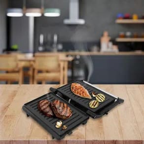 Chapas de qualidade Com as chapas antiaderentes e ondulas fica fácil de fazer a limpeza. O Grill ainda possui uma trava de abertura de 180 graus Celsius permitindo que seja utilizada tanto como Grill quanto com sanduicheira.