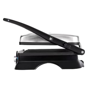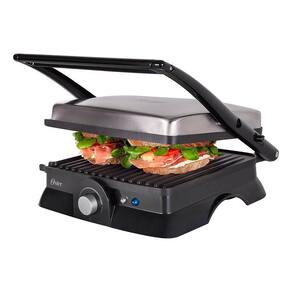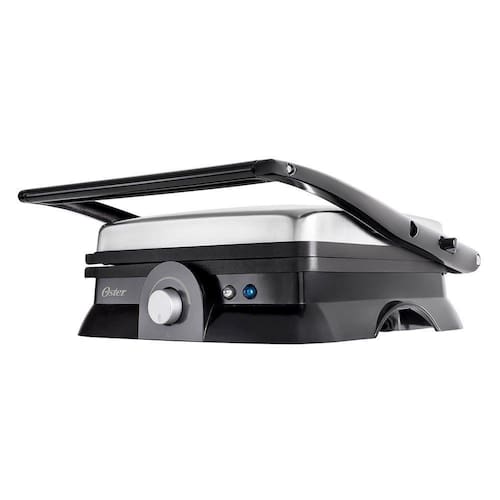 Grill elétrico multiuso Oster com abertura de 180 graus, chapas antiaderentes com ranhuras, controleTermostato regulável