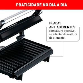 Independentemente do tamanho do alimento, o Grill Arno Panini se adapta perfeitamente. Sua placa superior ajustável permite acomodar desde pães mais finos até sanduíches recheados, garantindo que cada preparo receba o aquecimento ideal. Dessa forma, seus lanches ficam sempre dourados por fora e bem aquecidos por dentro, resultando em refeições deliciosas a qualquer momento do dia.