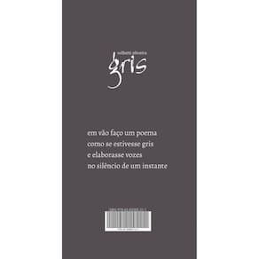 Em Gris, Wilbett Oliveira parte do mote “em vão faço um poema…” e glosa até o fim do livro com o complemento “como se…”, e cada glosa constitui em si um pequeno poema, continuidade da grande ode, cada um deles destacados em páginas consecutivas, que abarcam duas questões centrais de sua poesia: a temática e o estilo – ou, como expresso no poema de Gullar, a vertigem e a linguagem –, num enjambement que persiste até o final da obra e fica ainda mais patente quando da interrupção para o anúncio do início da segunda parte do livro, que se faz bem no meio de um sintagma iniciado no último verso da primeira parte para ser continuado nos versos inaugurais da seguinte. Algumas vezes sobrepostas numa mesma expressão, tais frentes figuram como um índice de seu fazer poético que acaba servindo de profícuo guia para poetas, principalmente aos neófitos como eu, que buscam razões e métodos na tessitura da poesia. O quê e o como, de mãos dadas, e às vezes superpostas, pela senda da composição num espelho de reconhecimento que delata a maturidade do poeta pronto para se desnudar nesse exercício de autoconhecimento. (Luiz Eduardo de Carvalho) Marca: CALENDULA