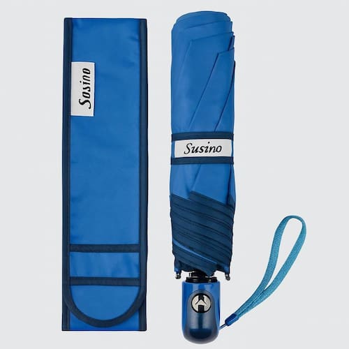 Cor azul claro feminina, moderna e delicada Estrutura resistente ao vento Tecido poliéster de alta durabilidade Compacto e portátil, ideal para levar no dia a dia Acompanha capa protetora Conforto no manuseio com cabo anatômico