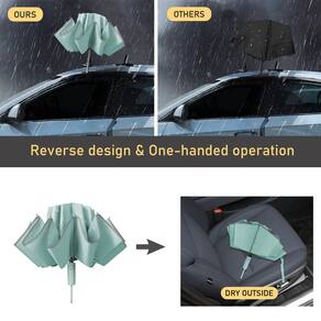 - Design à prova d'água: usamos pongee 280T de alta densidade (tecido impermeável), que tem melhores efeitos repelentes à água e de secagem rápida. Além disso, o design reverso pode envolver a parte úmida dentro do guarda-chuva, para que as gotículas de água não pinguem em seu corpo