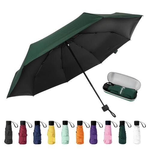 Viagem: como o nome sugere, os guarda-chuvas de viagem compactos são perfeitos para guardar em uma mala, mochila ou bolsa ao viajar. Seu pequeno tamanho dobrado permite que eles caibam em espaços apertados, garantindo que você esteja preparado para chuva inesperada ou sol intenso no seu destino. Deslocamento – Para viajantes diários caminhando para o trem, ônibus ou escritório, um guarda-chuva compacto escondido em uma pasta ou sacola pode ser um salva-vidas em dias chuvosos. Seu design leve e fácil de transportar não adiciona volume ou peso desnecessários. Eventos ao ar livre – Os guarda-chuvas compactos são ótimos para shows ao ar livre, jogos esportivos ou festivais onde o clima imprevisível é uma possibilidade. Seu tamanho pequeno facilita o armazenamento em uma mochila ou sacola até que seja necessário. Caminhadas e acampamentos: caminhantes e campistas podem se beneficiar da portabilidade de um guarda-chuva de viagem compacto e proteção UV. Eles podem ser utilizados para proteger da chuva ou do sol intenso durante a trilha ou em um acampamento. - Leve e portátil: os guarda-chuvas compactos são projetados para serem leves e fáceis de transportar, pesando apenas 243 g e medindo apenas 19,3 cm de comprimento ao dobrar - Resistência à água e proteção UV: um revestimento de teflon no dossel do guarda-chuva ajuda a repelir a água e evitar manchas, garantindo que o guarda-chuva seque rapidamente e permaneça em boas condições ao longo do tempo. Oferece proteção FPS 50+ protege você dos raios UV prejudiciais - Boa cobertura e armazenamento: quando totalmente aberto, o diâmetro do dossel é de 39 polegadas (99 cm), oferece cobertura adequada para proteger uma pessoa da chuva. Incluir uma capa macia evita que o guarda-chuva seja danificado por outros itens em uma bolsa ou bagagem - Maior durabilidade: os guarda-chuvas de 8 nervuras oferecem maior durabilidade e resistência ao vento em comparação com as opções de 6 nervuras. As nervuras de fibra de vidro e as hastes reforçadas ajudam a evitar que o guarda-chuva se inverta ou quebre durante condições de rajadas de vento - Uso diário: apesar de seu tamanho compacto, esses guarda-chuvas oferecem ampla cobertura contra chuva e sol. Muitas pessoas mantêm um guarda-chuva compacto em seu carro, gaveta de mesa ou bolsa para uso diário, garantindo que estejam sempre preparadas para mudar as condições climáticas