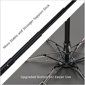 🌂 Design do botão de atualização - Fácil de fechar pressionando o botão sem a necessidade de muita força - Leve e compacto: pesando apenas 6,7 onças e medindo 6,9 polegadas de comprimento, este guarda-chuva ultracompacto cabe facilmente no seu bolso ou bolsa - Design do botão de atualização: o botão fácil de pressionar permite abrir e fechar o guarda-chuva rapidamente e com o mínimo de esforço - Robusto e de qualidade: construído com 6 nervuras reforçadas de fibra de vidro e um eixo de liga de alumínio resistente à corrosão. É uma excelente escolha se você precisa de um guarda-chuva confiável para o uso diário - resistente ao vento e à prova d'água: as nervuras de fibra de vidro, junto com um eixo de metal resistente, equipam este guarda-chuva para suportar as condições típicas de vento e chuva. Ao contrário de vários outros mini guarda-chuvas de 6 costelas, é menos provável que se inverta. Seu revestimento à prova d'água facilita a secagem rápida, facilitando o armazenamento na bolsa após o uso. Um presente ideal: este guarda-chuva estiloso e prático é um ótimo presente para amigos, familiares e colegas