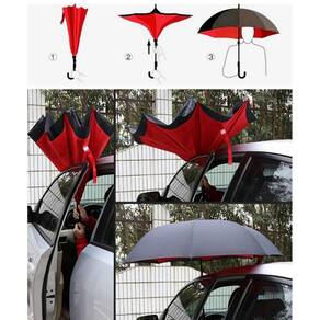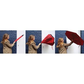 O guarda-chuva invertido traz um mecanismo inovador que permite que a pessoa não se molhe ao entrar e sair de automóveis ou demais lugares. Ao invés de fechar para guardá-lo molhado, basta deslizar a superfície com o botão para baixo e ele ficará invertido e bem mais fácil para ser secado e guardado. Pode ser apoiado no chão que ele permanecerá em pé para escorrer a água.