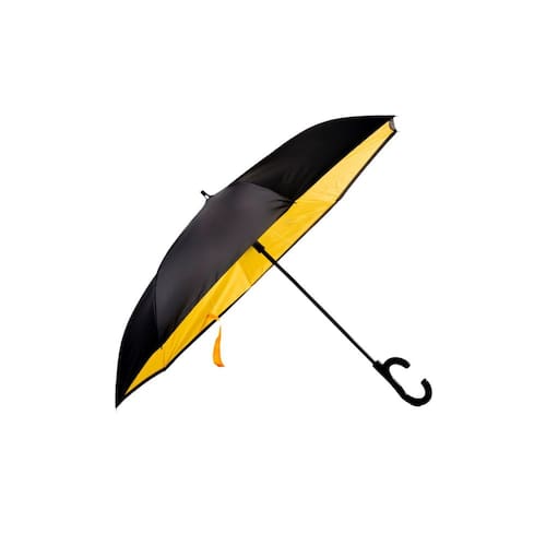 Este é o Guarda-chuva Invertido Ele abre ao clicar no botão e deslizar para cima, traz a vantagem do mecanismo invertido, que permite que a pessoa não se molhe ao entrar e sair de automóveis ou demais lugares. Ao invés de fechar para guardá-lo molhado, basta deslizar a superfície com o botão para baixo e ele ficará invertido e bem mais fácil para ser secado e guardado. Pode ser apoiado no chão que ele permanecerá em pé para escorrer a água. tecido impermeável dupla camada, Características: - Pongee/Tela de Nylon 190T - 8 varetas - Cores, aberto: Parte externa preta e parte interna com a cor escolhida - Cores, fechado: Parte externa com a cor escolhida e parte interna preta - Altura: 68 cm - Aberto: 100 cm