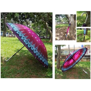Guarda Chuva Sombrinha de Seda 16 varetas automático com cabo Gancho. Adulto.
