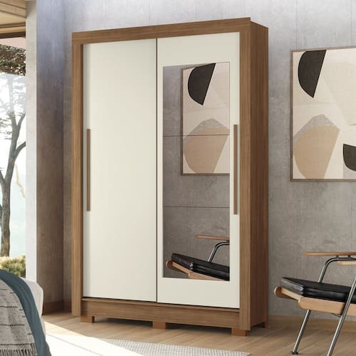 O guarda-roupa 02 portas de correr Lapa da Santos Andirá é um móvel de alta qualidade, beleza e funcionalidade. Seu design de 2 portas de correr é uma otima opção para espaços mais ajustados, possui 2 amplas gavetas internas com corrediças telescópicas para acomodar todos os pertences da família. As portas deslizam sob trilhos de aluminio e possuem freios, para ajustar onde quer que a porta pare ao abrir, e os puxadores são em MDF revestidos. Este guarda roupa ja vem acompanhado pelos pés em PVC, para a maior comodidade na hora da montagem, permitindo assim, a opção do consumidor quando montar. Internamente, este móvel possui várias prateleiras e também cabideiros em alumínio. Produzido dentro das normas de sustentabilidade. O acabamento é um pintura fosca em todas as opções de cores. Acabamento da Prateleira: Pintura UV Escala de Brilho da Prateleira: Fosco Possui Cabideiros: Sim Acabamento da Gaveta: Verniz Escala de Brilho da Gaveta: Fosco Possui Organizador de Gaveta: Não Acabamento da Porta: Verniz Escala de Brilho da Porta: Fosco Material do Puxador da Porta: MDF Acabamento dos Pés: Poliéster Altura do Espelho: 53 cm Altura dos Pés: 5 cm Altura Máxima dos Pés: 5.0000 Ambiente Principal: Quarto codigo_ean: 7900288109651 Complexidade da Montagem: Média: pode ser montado por mais de uma pessoa e/ou necessite de maior conhecimento para montagem Cor: Jabotá/Areia Cor do Produto: Jabotá/Areia Cor do Puxador: Marrom Cor Interna: Jatobá Escala de Brilho: Fosco Espessura da Estrutura (mm): 12 mm Espessura das Portas (mm): 12 mm Espessura das Prateleiras (mm): 12 mm Espessura do Espelho: 3 mm Espessura do Fundo (mm): 2,5 mm Espessura do Fundo das Gavetas (mm): 2,5 mm Fita Integrada: Sim Formato do Espelho: Quadrado Gaveta com Chave: Não Guarda-Roupa Suporta Até (kg): 64 kg Itens Inclusos: 1 Guarda Roupa, Kit Ferragens e Manual de Montagem em Pdf Largura do Espelho: 51 cm Linha ou Coleção: Linha Paraná Manual de Montagem e Instalação: https://product-hub-prd.madeiramadeira.com.br/982387/documents/a0dafc85-75c4-4ff4-9f52-32be27365d0c87031742587509982387150815.pdf Marca: Santos Andirá Material da Gaveta: MDP Material da Porta: MDP Material da Prateleira: MDP Material dos Pés: PVC Material Principal: MDP modular: Não Necessita Montagem: Sim Nicho com Cabideiro: Não Origem do Produto: Nacional Peso: 87,45 kg Peso Máximo por Gaveta: 3 kg Peso Máximo por Prateleira: 8 kg Porta Janelada: Não Possui Espelho: Sim Possui Pés: 06 Possui Portas: Sim Possui Prateleiras: Sim Produto Montado: Sim Quantidade de Cabideiros: 02 Cabideiros Quantidade de Espelho: 03 Espelhos com Tamanhos Iguais Quantidade de Gavetas: 02 Gavetas Quantidade de Portas com Espelhos: 1 Porta com Espelho Quantidade de Prateleiras: 03 Prateleiras Recomendações de Uso, Manutenção e Limpeza: Durabilidade: Permite ser desmontado e montado até cinco vezes. 5 – Manutenção: Não limpar com álcool ou qualquer outro produto químico, utilize somente pano seco ou levemente umedecido. Sapatas Niveladoras: Não Sistema de Montagem: Parafusos, Cavilha, Minifix Tipo de Corrediça da Gaveta: Metálica Telescópica Tipo de Dobradiça/Corrediça da Porta: Alumínio Tipo de Fixação do Espelho: Fita Dupla Face Tipo de Gaveta: Interna Tipo de Guarda-Roupa: Solteiro Tipo de Puxador da Gaveta: Não Possui Tipo de Puxador da Porta: Externo