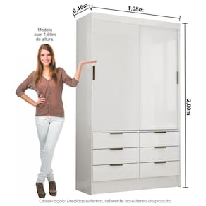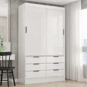 O Guarda-Roupa Sevilha com 02 Portas de correr, 2,00m de altura, 1,08m de largura e 0,45m de profundidade, combinado com 06 gavetas, 1 prateleira e 1 cabideiro, possibilita ao consumidor acomodar todas as roupas de maneira organizada e com maior visibilidade. As roldanas em aço e o trilho em alumínio potencializam o deslizar das portas. Acabamento da Prateleira: Pintura UV Escala de Brilho da Prateleira: Semi-Brilho Acabamento da Gaveta: Pintura UV Possui Organizador de Gaveta: Não Acabamento da Porta: Pintura UV Escala de Brilho da Porta: Semi-Brilho Ambiente Principal: Quarto codigo_ean: 7900288128652 Complexidade da Montagem: Média: pode ser montado por mais de uma pessoa e/ou necessite de maior conhecimento para montagem Cor: Branco Cor do Produto: Branco Cor Interna: Branco Escala de Brilho: Semi-Brilho Espessura da Estrutura (mm): 12 mm Espessura das Portas (mm): 12 mm Espessura das Prateleiras (mm): 12 mm Espessura do Fundo (mm): 3 mm Espessura do Fundo das Gavetas (mm): 3 mm Itens Inclusos: 01 Guarda-Roupas e Manual de Montagem Linha ou Coleção: Sevilha 2Pts Manual de Montagem e Instalação: https://product-hub-prd.madeiramadeira.com.br/717108340/documents/1ac0326c-68e6-42b8-b150-19c457a9198f2872921404174542945984.pdf Marca: Carioca Móveis Material da Gaveta: MDP/HDF Material da Porta: MDP Material da Prateleira: MDP Material Principal: MDP modular: Não Necessita Montagem: Sim Origem do Produto: Nacional Peso: 61,3 kg Peso Máximo por Gaveta: 5 kg Peso Máximo por Prateleira: 5 kg Possui Calceiros: Não Possui Espelho: Não Possui Pés: Não Possui Portas: Sim Possui Prateleiras: Sim Produto Montado: Sim Quantidade de Gavetas: 06 Gavetas Recomendações de Uso, Manutenção e Limpeza: Limpar com flanela ou pano macio seco, não utilizar produtos abrasivos, desengordurantes, álcool ou solvente. Não expor o produto diretamente à luz solar e à umidade. Sistema de Montagem: Prafusos e Cavilhas. Tipo de Corrediça da Gaveta: Metálica Simples Tipo de Dobradiça/Corrediça da Porta: Aço Tipo de Gaveta: Externa Tipo de Guarda-Roupa: Solteiro Tipo de Puxador da Gaveta: Externo Tipo de Puxador da Porta: Externo