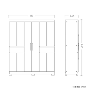 Móvel versátil com 2 gavetas de abertura suave graças às corrediças telescópicas. Puxadores em MDF revestido, cabideiros em alumínio duráveis e pés inclusos garantem praticidade e resistência. Uma opção ideal para manter tudo organizado com estilo e excelente acabamento. Acabamento da Prateleira: Pintura UV Escala de Brilho da Prateleira: Fosco Possui Cabideiros: Sim Acabamento da Gaveta: Pintura UV Escala de Brilho da Gaveta: Semi-Brilho Possui Organizador de Gaveta: Não Acabamento da Porta: Pintura UV Escala de Brilho da Porta: Brilhante Material do Puxador da Porta: MDF Altura dos Pés: 5 cm Altura Máxima dos Pés: 5.0000 Ambiente Principal: Quarto codigo_ean: 7900288320490 Complexidade da Montagem: Alta: deve ser montado por um montador especializado Cor: Nogueira / Capuccino Cor da Porta: Marrom Cor do Produto: Nogueira / Capuccino Cor Interna: Branco Escala de Brilho: Fosco Espessura da Estrutura (mm): 12 mm Espessura das Portas (mm): 15 mm Espessura das Prateleiras (mm): 12 mm Espessura do Fundo (mm): 3 mm Espessura do Fundo das Gavetas (mm): 3 mm Guarda-Roupa Suporta Até (kg): 71 kg Itens Inclusos: 1 Guarda-Roupa e Manual de Montagem Linha ou Coleção: Albatroz Manual de Montagem e Instalação: https://product-hub-prd.madeiramadeira.com.br/563931738/documents/3d719204-3c82-41ab-8b6d-f95ce310b7db337268467517697129912269.pdf Marca: Albatroz Móveis Material da Gaveta: MDP Material da Porta: MDP Material da Prateleira: MDP Material dos Pés: Plástico Material Principal: MDP modular: Não Necessita Montagem: Sim Nicho com Cabideiro: Sim Origem do Produto: Nacional Peso: 93,8 kg Peso Máximo por Gaveta: 5 kg Peso Máximo por Prateleira: 5 kg Porta Janelada: Não Possui Calceiros: Não Possui Capelinha: Não Possui Espaço para Vestidos Longos: Não Possui Espelho: Não Possui Espelho Interno: Não Possui Ganchos: Não Possui iluminação: Não Possui Nichos: Sim Possui Painel de TV: Não Possui Penteadeira: Não Possui Pés: 06 Possui Portas: Sim Possui Prateleiras: Sim Possui Sapateira: Não Produto Montado: Sim Quantidade de Cabideiros: 02 Cabideiros Quantidade de Gavetas: 02 Gavetas Quantidade de Prateleiras: 05 Prateleiras Recomendações de Uso, Manutenção e Limpeza: Limpar com flanela ou pano macio seco, não utilizar produtos abrasivos, desengordurantes, álcool ou solvente. não expor o produto diretamente à luz solar e à umidade. Sistema de Montagem: Parafusos, Cavilha e Minifix Suporta Até (kg): 71 kg Tipo de Corrediça da Gaveta: Metálica Telescópica Tipo de Dobradiça/Corrediça da Porta: Metálica Tipo de Gaveta: Externa Tipo de Guarda-Roupa: Casal Tipo de Puxador da Gaveta: Não Possui Tipo de Puxador da Porta: Externo