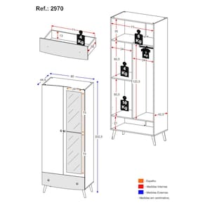 Estilo e design: Com puxadores redondos em ABS e pés retrô em polipropileno, o guarda-roupa traz um toque de charme e modernidade à decoração do seu quarto. Ideal para quem deseja um móvel bonito, resistente e altamente funcional.