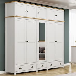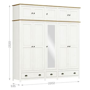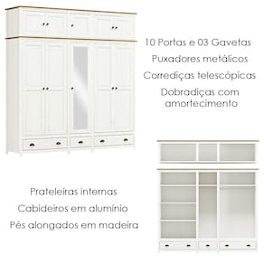 Guarda-roupa Bipartido projetado para quem busca aliar sofisticação e praticidade no seu espaço. Fabricado em madeira maciça, oferece durabilidade e resistência para o seu dia a dia. Com 220cm de largura, 10 portas, sendo 01 com espelho e 03 gavetas, o modelo conta com amplo espaço interno, permitindo organização eficiente de suas roupas e acessórios. Seu design moderno se destaca pelos pés alongados em madeira, conferindo um toque de leveza ao móvel, e seu acabamento com pintura acetinada em verniz PU e UV que realça a beleza natural da madeira. As gavetas possuem corrediças telescópicas, garantindo um deslizamento suave e silencioso, e as portas são equipadas com dobradiças com amortecimento, oferecendo um fechamento sem impactos. Com prateleiras internas e 02 cabideiros em alumínio, o guarda-roupa oferece organização flexível e suficiente para todos os seus itens. Além disso, conta com um maleiro espaçoso, ideal para o armazenamento de itens volumosos como cobertores, roupas de cama, malas e outros objetos. Os puxadores metálicos no estilo concha e botão trazem um charme extra ao design, combinando perfeitamente com o restante da peça. Este móvel chegará em sua casa separado em 04 volumes.