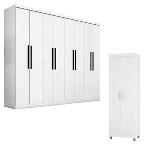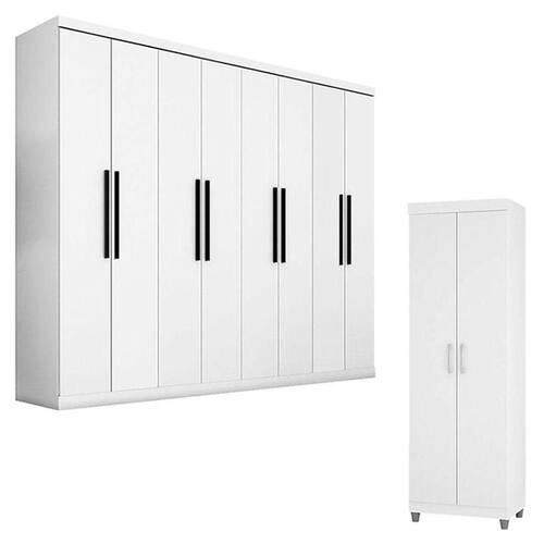 Guarda Roupa 1684 e Armário Multiuso 6020 Branco com Pés - Araplac