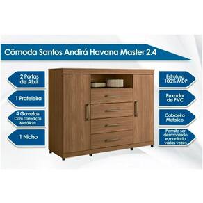 CÔMODA DE QUARTO MASTER C/ 2 PORTAS 1 NICHO E 4 GAVETAS C/ RODÍZIO JATOBÁ - SANTOS ANDIRÁ Marca: Santos Andirá