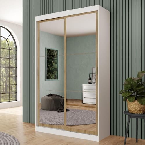 Guarda Roupa 2 Portas 2 Gav Espelho Branco Carraro Nero