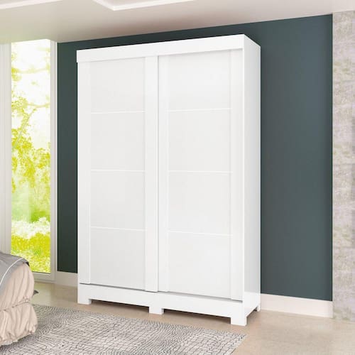 Roupeiro Turim, em madeira de mdp, com 02 portas de correr, 02 gavetas internas, 02 prateleiras, 01 cabideiro, corrediças metálicas, trilho metálico, com pés, espaço para roupas longas, acabamento em pintura UV. Acabamento da Prateleira: Pintura UV Escala de Brilho da Prateleira: Fosco Possui Cabideiros: Sim Acabamento da Gaveta: Pintura UV Possui Organizador de Gaveta: Não Acabamento da Porta: Pintura UV Escala de Brilho da Porta: Brilhante Material do Puxador da Porta: MDP Acabamento dos Pés: Pintura Ambiente Principal: Quarto codigo_ean: 7908308741089 Complexidade da Montagem: Média: pode ser montado por mais de uma pessoa e/ou necessite de maior conhecimento para montagem Cor: Branco Cor do Produto: Branco Cor Interna: Branco Escala de Brilho: Brilhante Itens Inclusos: 1 Guarda Roupa, Kit Ferragens e Manual de Montagem Linha ou Coleção: Classic Manual de Montagem e Instalação: https://product-hub-prd.madeiramadeira.com.br/832697/documents/7e9b309a-06e4-4cb1-8a57-f90feffcb187ontagemroupeiroturimbc2190.pdf Material da Gaveta: MDP Material da Porta: MDP Material da Prateleira: MDP Material dos Pés: PVC Material Principal: MDP Origem do Produto: Nacional Peso: 70,84 kg Peso Máximo por Gaveta: 5 kg Peso Máximo por Prateleira: 9 kg Possui Calceiros: Não Possui Espelho: Não Possui Pés: 06 Possui Portas: Sim Possui Prateleiras: Sim Quantidade de Gavetas: 02 Gavetas Recomendações de Uso, Manutenção e Limpeza: Para limpar, utilizar somente um pano úmido Sistema de Montagem: Parafusos, pregos, cavilhas, pinos. Tipo de Corrediça da Gaveta: Metálica Simples Tipo de Dobradiça/Corrediça da Porta: Metálica Tipo de Gaveta: Interna Tipo de Guarda-Roupa: Solteiro Tipo de Puxador da Gaveta: Não Possui Tipo de Puxador da Porta: Embutido Ean: 7908308741089