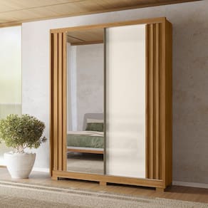 Caracteristicas do produto: Modelo: Colorado Matéria-prima: MDP Revestimento: UV/Relevo Fosco Portas: 02 portas de correr Trilhos: Alumínio Gavetas: 03 gavetas Corrediças: Telescópicas Prateleiras: 07 prateleiras Vidro :3 mm Cabideiros: 02 cabideiros Sapateira: 01 Pés :PVC Altura dos pés: 7 cm