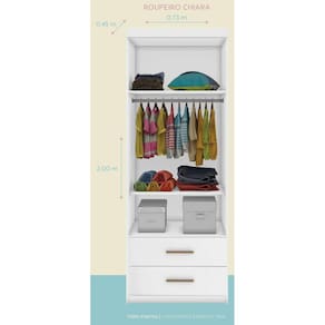 O Guarda Roupa Infantil Chiara 2 Portas Branco, é uma ótima opção para quem tem pouco espaço e quer um móvel moderno para guardar as roupas do seu bebê. O Guarda Roupa Chiara tem 2 Portas e 2 gavetas com corrediças telescópicas, prateleiras internas, cabideiro e design exclusivo. Confira!