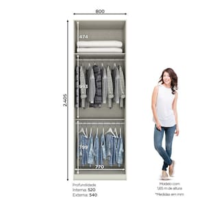 O guarda roupa Seletto tem 02 portas, une design e funcionalidade. O módulo é Flex e tem duas opções de montagem interna, opção 01 – seis prateleiras, opção 02 –dois cabideiros e uma prateleira. A linha Seletto foi desenvolvida para possibilitar várias opções de montagens e atender diversas necessidades de espaço, oferecendo mais praticidade no seu dia a dia, é compacto e bem planejado, perfeito para a organização, deixando o ambiente ainda mais aconchegante e sofisticado. Tem 2405mm de altura, 800mm de largura e 540mm de profundidade. Acabamento da Gaveta: Acabamento da Porta: Pintura Texturizada UV Acabamento da Prateleira: Pintura Texturizada UV Acabamento dos Pés: Pintura Texturizada UV Acompanha Banqueta: Acompanha Cama Auxiliar: Acompanha Colchão: Acompanha Lâmpada: Acompanha Suporte para Fixação/Trilho: Altura do Estrado até o Chão: Altura do Estrado Superior até o Chão: Altura dos Pés: 5 Ambiente Principal: Quarto Cabeceira Estofada: Cama Auxiliar Acompanha Colchão: Cama Auxiliar com Rodízio: Cama Auxiliar Suporta Até (kg): Complexidade da Montagem: Alta: deve ser montado por um montador especializado Composição: MDP Cor: Areia HP Cor da Banqueta: Cor do Produto: Areia HP Cor Flex: Cor Interna: Cinza Enchimento da Banqueta: Escala de Brilho: Semi-Brilho Espessura do Espelho: Espessura do Material da Estrutura: Espessura do Vidro: Fita Integrada: Fixação Box: Fixação na Parede: Formato do Espelho: Gaveta com Chave: Informações Complementares: Itens Inclusos: 1 Armário, Kit Ferragens e Manual de Montagem Largura do Colchão Indicado: Linha ou Coleção: Seletto Manual de Especificação Técnica: Manual de Montagem e Instalação: https://cdn2.madeiramadeira.com.br/atributo/henn-briz-quarto-adulto/1030709-mc08-roupeiro-seletto-02-portas-cabideiro.pdf Material da Banqueta: Material da Escada: Material da Gaveta: Material da Porta: MDP Material da Prateleira: MDP Material do Estrado: Material do Puxador da Gaveta: Material do Puxador da Porta: Material do Suporte/Trilho: Material dos Pés: MDF/MDP Material Principal: MDF/MDP Medida da Banqueta: Medida da Moldura: Montagem Flex: O módulo é Flex e tem duas opções de montagem interna, opção 01 – seis prateleiras, opção 02 –dois cabideiros e uma prateleira. Necessita Montagem: Sim O Módulo Pode ser utilizado individualmente: Sim Origem do Produto: Nacional Permite a Utilização de Cama Auxiliar: Pés Reguláveis: Não Peso: 69 Peso da Banqueta: Peso Máximo por Gaveta: Peso Máximo por Prateleira: 8 Peso Suportado pela Banqueta: Peso Suportado por cada cama: Possui Cabideiros: Possui Calceiros: Possui Espelho: Não Possui iluminação: Possui Moldura: Possui Organizador de Gaveta: Possui Pés: Rodapé Possui Porta Objetos: Possui Portas: 01 Possui Prateleiras: 06 Possui Rodízio: Não Possui Vidro: Quantidade de Nichos: Quantidade de Prateleiras: Recomendações de Uso, Manutenção e Limpeza: Para limpeza do seu móvel, use uma flanela seca ou umedecida. N'ao utilize produtos químicos que possam danificar o produto.. Resistente à Chuva: Revestimento: Revestimento da Banqueta: Rodízio com Trava: Sapatas Niveladoras: Sim Sistema de Montagem: Parafusos e Cavilhas Suporta Até (kg): Suporta Quantos Pares de Calçados: Tamanho do Colchão Indicado (L x C): Tamanho do Colchão Indiciado Cama Auxiliar: Tamanho do Espelho (A x L): Tampo Basculante: Tipo de Cabideiro: Tipo de Cama: Tipo de Colchão: Tipo de Corrediça da Gaveta: Tipo de Dobradiça/Corrediça da Porta: Metálica Tipo de Estrado: Tipo de Fixação: Tipo de Fixação do Espelho: Tipo de Gaveta: Tipo de Guarda-Roupa: Solteiro Tipo de Lâmpada: Tipo de Madeira Maciça: Tipo de Madeira Maciça da Gaveta: Tipo de Madeira Maciça da Porta: Tipo de Madeira Maciça da Prateleira: Tipo de Madeira Maciça dos Pés: Tipo de Módulo: Guarda-Roupa Tipo de Puxador da Gaveta: Tipo de Puxador da Porta: Externo Vidro Temperado: