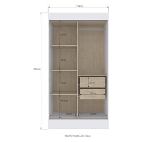 Dimensões do produto montado: Altura: 200cm | Largura: 104cm | Profundidade: 50cm *Você pode consultar as medidas internas na imagem técnica do produto.