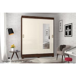 Guarda Roupa 2 Portas de Correr (1 c/ Espelho) e 2 Gavetas c/ Pés Briz B66 Branco - Henn