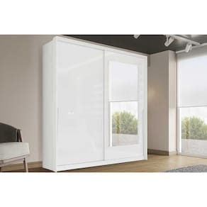 Guarda Roupa 2 Portas de Correr (1 c/ espelho) e 2 Gavetas Porto Branco - Politorno