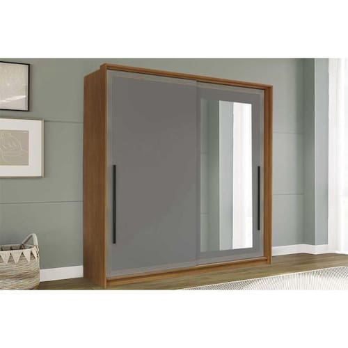 Guarda Roupa Casal 2 Portas de Correr (1 c/ espelho) e 2 Gavetas Valência Freijo/Cinza - Politorno