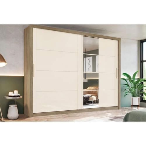 Guarda Roupa 2 Portas De Correr (1 C/ Espelho) E 4 Gavetas Palace Rústico/off White - Henn