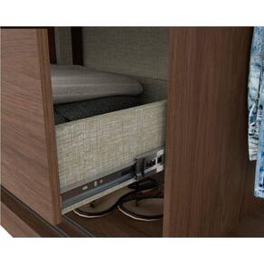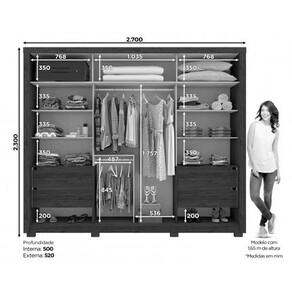 Dimensões(Cm): Comnto(Profundidade): 54cm x Largura: 230cm x Altura: 52cm Material de Estrutura - MDF/MDP Tipo de Pintura - Ultravioleta Tipo de Acabamento da Pintura - Semi Brilho Tipo de Acabamento - Acabamento Interno Branco Diferenciais Guarda Roupas - Calceiro - Sapateira - Divisão Ele/Ela Material dos Cabideiros - Cabideira Metálico Diferenciais das Portas - Fechamento c/ Freio Anti-Impacto Quantidade de Portas - 2 Portas de Correr Tipo de Corrediça - c/ Corrediças Telescópicas Quantidade de Gavetas - 4 Gavetas Quantidade de Prateleiras - 7 Montagem do Produto - Desmontável Certificação de Qualidade - Qualidade Aprovada Garantia - Garantia de 90 Dias