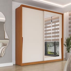 O guarda-roupa 2 portas de correr 2 gavetas Porto com espelho, da Politorno Móveis, combina modernidade, elegância e funcionalidade. Com 200 cm de altura, 180,1 cm de largura e 44,5 cm de profundidade, é ideal para quem busca otimizar espaços sem abrir mão da sofisticação. Suas portas de correr garantem praticidade no dia a dia, enquanto os espelhos agregam um toque sofisticado e ampliam o ambiente. Fabricado em MDP/MDF, possui acabamento em pintura UV e FF, garantindo durabilidade e resistência. As gavetas com corrediças telescópicas proporcionam um deslizamento suave, e os puxadores embutidos conferem um design clean e moderno. Perfeito para um quarto elegante e bem organizado. Acabamento da Prateleira: Pintura UV Escala de Brilho da Prateleira: Semi-Fosco Acabamento da Gaveta: Pintura UV Escala de Brilho da Gaveta: Semi-Fosco Possui Organizador de Gaveta: Não Acabamento da Porta: Pintura UV Escala de Brilho da Porta: Semi-Fosco Material do Puxador da Porta: MDF Acabamento dos Pés: Finish Foil Altura do Espelho: 168 cm Altura dos Pés: 10 cm Altura Máxima dos Pés: 10.0000 Ambiente Principal: Quarto codigo_ean: 7900288093998 Complexidade da Montagem: Média: pode ser montado por mais de uma pessoa e/ou necessite de maior conhecimento para montagem Cor: Freijo/Creme Cor do Produto: Freijó/Creme Cor Interna: Freijó Escala de Brilho: Semi-Fosco Espessura da Estrutura (mm): 15 mm Espessura das Portas (mm): 15 mm Espessura das Prateleiras (mm): 15 mm Espessura do Espelho: 3 mm Espessura do Fundo (mm): 3 mm Espessura do Fundo das Gavetas (mm): 3 mm Fita Integrada: Sim Formato do Espelho: Retangular Gaveta com Chave: Não Itens Inclusos: 1 Guarda-Roupa, 1 Kit de Ferragens, 1 Manual de Montagem +1 Termo de Garantia Largura do Espelho: 71,5 cm Linha ou Coleção: Porto Manual de Especificação Técnica: https://product-hub-prd.madeiramadeira.com.br/981959/documents/5e40f654-658b-4901-9ec4-807b6d8bcef52754213622417424169466543.pdf Manual de Montagem e Instalação: https://product-hub-prd.madeiramadeira.com.br/981959/documents/031a9a89-5cee-4aa7-ba8a-07c93ff0188c2754212622417424169454898.pdf Marca: Politorno Material da Gaveta: MDF/MDP Material da Porta: MDF/MDP Material da Prateleira: MDF/MDP Material dos Pés: MDF Material Principal: MDF/MDP modular: Não Necessita Montagem: Sim Origem do Produto: Nacional Peso: 97,32 kg Peso Máximo por Gaveta: 3 kg Peso Máximo por Prateleira: 10 kg Possui Calceiros: Não Possui Espelho: Sim Possui Pés: Rodapé Possui Portas: Sim Possui Prateleiras: Sim Produto Montado: Sim Quantidade de Cabideiros: 04 Cabideiros Quantidade de Espelho: 03 Espelhos com Tamanhos Iguais Quantidade de Gavetas: 02 Gavetas Quantidade de Portas com Espelhos: 1 Porta com Espelho Quantidade de Prateleiras: 08 Prateleiras Recomendações de Uso, Manutenção e Limpeza: Utilize um pano macio umedecido com água e sabão neutro, seguido de pano seco. Não utilize produtos químicos ou abrasivos para limpeza, pois estes danificam o revestimento do móvel. Sapatas Niveladoras: Sim Sistema de Montagem: Cavilha, Parafuso, Minifix e prego. Tipo de Corrediça da Gaveta: Metálica Telescópica Tipo de Dobradiça/Corrediça da Porta: Metálica Tipo de Fixação do Espelho: Fita Dupla Face Tipo de Gaveta: Interna Tipo de Guarda-Roupa: Casal Tipo de Puxador da Gaveta: Não Possui Tipo de Puxador da Porta: Embutido undefined: 981960