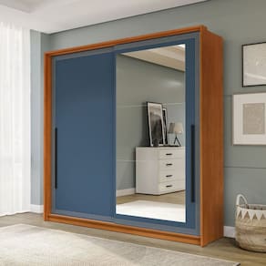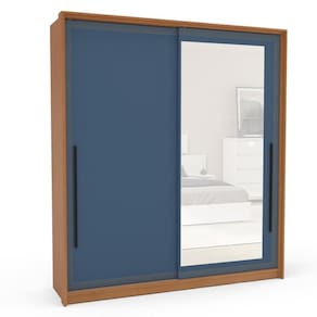 O guarda-roupa 2 portas de correr 2 gavetas da linha Valência, da Politorno Móveis, alia design moderno, elegante e funcional. Com 200 cm de altura, 180,1 cm de largura e 44,5 cm de profundidade, é ideal para otimizar o espaço de maneira eficiente. As portas de correr facilitam o uso em ambientes menores, enquanto as gavetas com corrediças telescópicas garantem um deslizamento suave. Fabricado em MDP/MDF, com acabamento em pintura UV e FF, oferece alta resistência e durabilidade. O espelho embutido agrega sofisticação e amplia o ambiente, e seus puxadores externos e detalhes usinados completam o visual, tornando-o perfeito para um quarto funcional e elegante. Acabamento da Prateleira: Pintura UV Escala de Brilho da Prateleira: Semi-Fosco Acabamento da Gaveta: Pintura UV Escala de Brilho da Gaveta: Semi-Fosco Material do Puxador da Gaveta: MDF Possui Organizador de Gaveta: Não Acabamento da Porta: Pintura UV Escala de Brilho da Porta: Semi-Fosco Material do Puxador da Porta: MDF Acabamento dos Pés: Finish Foil Altura do Espelho: 143 cm Altura dos Pés: 0,37 cm Altura Máxima dos Pés: 0.3700 Ambiente Principal: Quarto codigo_ean: 7900288116611 Complexidade da Montagem: Média: pode ser montado por mais de uma pessoa e/ou necessite de maior conhecimento para montagem Cor: Freijó/Azul Cor do Produto: Freijó/Azul Cor do Puxador: Preto Cor Interna: Freijó Escala de Brilho: Semi-Fosco Espessura da Estrutura (mm): 15 mm Espessura das Portas (mm): 15 mm Espessura das Prateleiras (mm): 15 mm Espessura do Espelho: 3 mm Espessura do Fundo (mm): 3 mm Espessura do Fundo das Gavetas (mm): 3 mm Fita Integrada: Sim Formato do Espelho: Retangular Gaveta com Chave: Não Itens Inclusos: 1 Guarda-Roupa, Kit de Ferragens, Manual de Montagem e Termo de Garantia Largura do Espelho: 56 cm Linha ou Coleção: Valência Manual de Montagem e Instalação: https://product-hub-prd.madeiramadeira.com.br/984458/documents/d86929c3-081a-49ed-aeab-0e99a55eb9fc2806754622417440511352664.pdf Marca: Politorno Material da Gaveta: MDF/MDP Material da Porta: MDF/MDP Material da Prateleira: MDF/MDP Material dos Pés: MDF Material Principal: MDF/MDP modular: Não Necessita Montagem: Sim Origem do Produto: Nacional Peso: 81,34 kg Peso Máximo por Gaveta: 5 kg Peso Máximo por Prateleira: 10 kg Possui Calceiros: Não Possui Espelho: Sim Possui Pés: Rodapé Possui Portas: Sim Possui Prateleiras: Sim Produto Montado: Sim Quantidade de Espelho: 03 Espelhos com Tamanhos Iguais Quantidade de Gavetas: 02 Gavetas Quantidade de Portas com Espelhos: 1 Porta com Espelho Quantidade de Prateleiras: 05 Prateleiras Recomendações de Uso, Manutenção e Limpeza: Utilize um pano macio umedecido com água e sabão neutro, seguido de pano seco. Não utilize produtos químicos ou abrasivos para limpeza, pois estes danificam o revestimento do móvel. Sapatas Niveladoras: Não Sistema de Montagem: Cavilha, Parafuso, Minifix e prego Tipo de Corrediça da Gaveta: Metálica Telescópica Tipo de Dobradiça/Corrediça da Porta: Alumínio Tipo de Fixação do Espelho: Fita Dupla Face Tipo de Gaveta: Interna Tipo de Guarda-Roupa: Casal Tipo de Puxador da Gaveta: Externo Tipo de Puxador da Porta: Externo