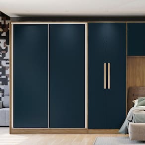 Para quem sempre sonhou com um quarto planejado, o Modulado Adapt da Kappesberg é a escolha ideal. Produzido em MDP, material de alta qualidade, o Roupeiro 2 portas N537 é ideal para quem busca por organização e praticidade. Uma peça indispensável e muito versátil, ele garante ainda mais beleza e funcionalidade, além de muito espaço. Com duas portas de correr e uma ótima divisão interna, é a opção perfeita para todas as composições, e com divisões entre prateleiras, gavetas e cabideiros, ele acomoda desde calçados até peças de roupa dobradas ou penduradas em cabides, deixando seu espaço sempre organizado. E com pintura de sete camadas, ele conta com uma combinação de cores única e muito moderna, entre o Nogueira e Azul profundo, combinando facilmente com todos os ambientes, além de garantir a sensação de aconchego e conforto. Os destaques ficam por conta da montagem interna ajustável, podendo ampliar a quantidade de gavetas ou prateleiras, além da opção com ou sem espelhos, deixando você com o quarto que sempre sonhou. Renove seu quarto com toda a qualidade e beleza que o Modulado Adapt da Kappesberg oferece e aproveite cada momento.