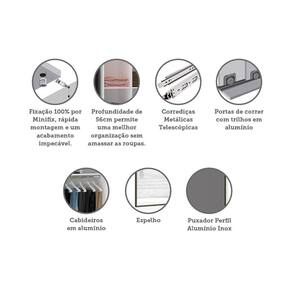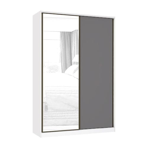 Guarda Roupa 2 Portas de Correr 3 Gavetas 159cm com Espelho Prime Luciane Móveis - Cinza