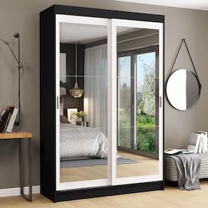 Os materiais utilizados são de alta qualidade, com duas portas de correr com deslizamento suave e puxadores em alumínio, dobradiças metálicas e trilho superior e inferior em alumínio. Ambas as portas possuem espelhos, que além de trazerem beleza, também transmitem a sensação de um ambiente mais amplo.