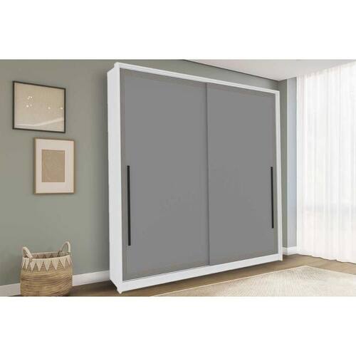 Guarda Roupa Casal 2 Portas de Correr e 2 Gavetas Valência Branco/Cinza - Politorno