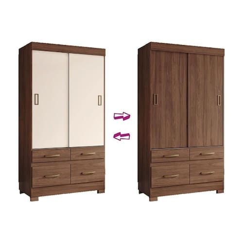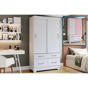 Guarda Roupa Solteiro 2 Portas de Correr e 4 Gavetas Briz BE25 Branco/Rosa - Henn