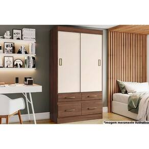 Guarda Roupa 2 Portas De Correr E 4 Gavetas Briz Be25 Castanho/castanho Ou Off White - Henn