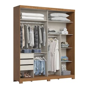 O Roupeiro Alonzo foi projetado para agradar todos os gostos. O Guarda-Roupa conta com 02 portas deslizantes com detalhes usinados arredondados, 03 gavetas com corrediças telescópicas, cabideiros e calceiro em alumínio, puxadores em ABS com acabamento bronze, espelho com cantos arredondados e um amplo espaço interno para melhor organização das roupas. Acabamento da Prateleira: Pintura Texturizada UV Escala de Brilho da Prateleira: Fosco Possui Cabideiros: Sim Acabamento da Gaveta: Pintura Texturizada UV Possui Organizador de Gaveta: Não Acabamento da Porta: Pintura Texturizada UV Escala de Brilho da Porta: Fosco Material do Puxador da Porta: Alumínio Altura do Espelho: 80 cm Altura dos Pés: 5 cm Altura Máxima dos Pés: 5.0000 Ambiente Principal: Quarto codigo_ean: 7900288112699 Complexidade da Montagem: Alta: deve ser montado por um montador especializado Cor: Marrom/Preto Cor do Produto: Marrom/Preto Cor Interna: Trama (Bege Acinzantado) Escala de Brilho: Fosco Espessura da Estrutura (mm): 15 mm Espessura das Portas (mm): 15 mm Espessura das Prateleiras (mm): 15 mm Espessura do Espelho: 3 mm Espessura do Fundo (mm): 3 mm Espessura do Fundo das Gavetas (mm): 3 mm Formato do Espelho: Retangular Guarda-Roupa Suporta Até (kg): 90 kg Informações Complementares: • 03 gavetas com corrediças telescópicas • 02 portas com detalhes usinados arredondados • Portas com perfil alinhador de metal • Cabideiros e calceiro em alumínio • Puxadores com acabamento bronze • Espelhos com cantos arredondados Itens Inclusos: 1 Guarda Roupa, Instrução de Montagem Largura do Espelho: 50 cm Linha ou Coleção: Talles Manual de Montagem e Instalação: https://product-hub-prd.madeiramadeira.com.br/981635/documents/4be1c6a6-9231-4986-8af1-5283701a2cb62747639326617422412968994.pdf Marca: Espresso Móveis Material da Gaveta: MDF/MDP Material da Porta: MDP Material da Prateleira: MDP Material dos Pés: ABS Material Principal: MDF/MDP modular: Não Montagem Flex: Não Necessita Montagem: Sim Origem do Produto: Nacional Peso: 108 kg Peso Máximo por Gaveta: 3 kg Peso Máximo por Prateleira: 8 kg Possui Calceiros: 01 Possui Espelho: Sim Possui Pés: 06 Possui Portas: Sim Possui Prateleiras: Sim Produto Montado: Sim Quantidade de Cabideiros: 01 Cabideiro Quantidade de Espelho: 02 Espelhos com Tamanhos Iguais Quantidade de Gavetas: 03 Gavetas Quantidade de Portas com Espelhos: 1 Porta com Espelho Quantidade de Prateleiras: 05 Prateleiras Recomendações de Uso, Manutenção e Limpeza: Para limpeza de seu móvel, use uma flanela limpa e seca. Não utilize produtos químicos que possam danificar o produto. Sistema de Montagem: Parafusos e Cavilhas Suporta Até (kg): 90 kg Tipo de Corrediça da Gaveta: Metálica Telescópica Tipo de Dobradiça/Corrediça da Porta: Metálica Tipo de Fixação do Espelho: Parafusos Tipo de Gaveta: Interna Tipo de Guarda-Roupa: Casal Tipo de Puxador da Gaveta: Não Possui Tipo de Puxador da Porta: Externo