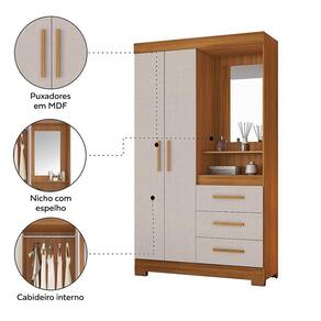 Ideal para os quartos com pouca área útil, o Guarda-Roupa NT 5170 - MoveisAqui, é essencial para o seu quarto, por ser compacto se encaixa perfeitamente nesse ambiente. Possui um espelho, para dar aquela conferida no look, além de duas portas e três gavetas que contribuirão para a orgazição.