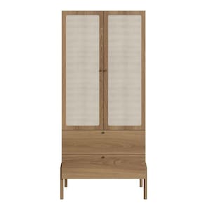 Guarda Roupa 2 Portas Oslo Artesano 80 Cm (larg) Mdp Hanover Palha Sintética Bege Pé Madeira Maciça