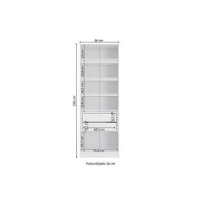 Acabamento: Pintura Brilho / Pintura Touch | Acabamento da Fita Borda: Papel | Cor: Branco/Nogueira | Corrediças: Telescópicas | Dobradiça: Com Amortecimento | Garantia: 3 meses para defeito de fabricação | Gavetas: Internas | Matéria-prima: MDP | Peso suportado por cada prateleira: 7 kg | Puxadores: MDF Revestido | Quantidade de gavetas: 2 | Quantidade de portas: 2 | Quantidade de prateleiras: 4 | Sistema de montagem: Parafuso Philips / Parafuso Philips e Minifix | Tipo de porta: Bater