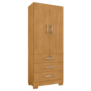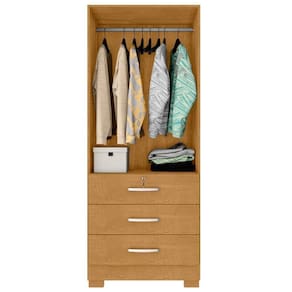 Feito em MDP 15mm.Possui 3 gavetas com corrediças telescópicas sendo a primeira com chave garantindo a maior segurança dos seus itens, 2 portas e 1 cabideiro
