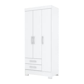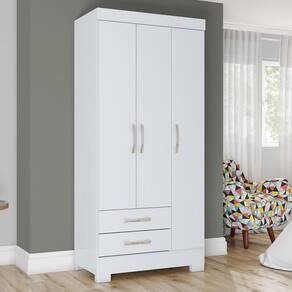 O Roupeiro BE16 com 3 portas de abrir foi desenvolvido para oferecer praticidade no seu dia a dia, proporcionando muito mais comodidade na hora de organizar suas roupas, com 2 gavetas na parte externa para organização de peças menores, com corrediças metálicas que permite um deslize mais seguro e suave. Ideal para ambientes com pouco espaço. Roupeiro com pés. Produzido em MDP. Complemente seu quarto com bom gosto e qualidade.