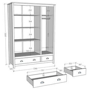 Conteúdo da Embalagem: 1 Guarda-Roupa, manual de montagem e Kit Ferragem