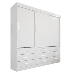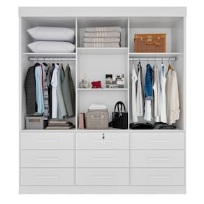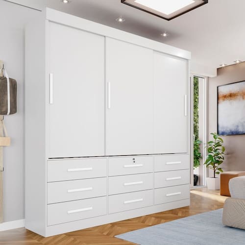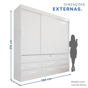 O Guarda Roupa Florença é produzido em chapa de 15mm, com 3 portas de correr. Possui trilho de alumínio anti queda que garante durabilidade e modernidade. Contém 4 prateleiras e 9 gavetas com corrediças telescópicas, sendo uma delas com chave, proporcionando suavidade e melhor durabilidade. Além disso, conta com cabideiro e trilho em alumínio. Acabamento da Prateleira: Pintura UV Escala de Brilho da Prateleira: Semi-Brilho Possui Cabideiros: 02 Acabamento da Gaveta: Pintura UV Possui Organizador de Gaveta: Não Acabamento da Porta: Pintura UV Escala de Brilho da Porta: Semi-Brilho Material do Puxador da Porta: PVC Altura dos Pés: 7 cm Altura Máxima dos Pés: 7.0000 Ambiente Principal: Quarto Complexidade da Montagem: Alta: deve ser montado por um montador especializado Cor: Branco Cor do Produto: Branco Escala de Brilho: Fosco Gaveta com Chave: Sim Itens Inclusos: 1 Guarda-Roupa, Kit Ferragens e Manual de Montagem Linha ou Coleção: Florença Manual de Montagem e Instalação: https://product-hub-prd.madeiramadeira.com.br/919573/documents/f61ef132-625e-42b5-84b3-bec8023fab742094779524617194955609847.pdf Material da Gaveta: MDP Material da Porta: MDP Material da Prateleira: MDP Material dos Pés: PVC Material Principal: MDP modular: Não Necessita Montagem: Sim Origem do Produto: Nacional Peso: 135,8 kg Peso Máximo por Gaveta: 3 kg Peso Máximo por Prateleira: 5 kg Possui Calceiros: Não Possui Espelho: Não Possui Pés: 08 Possui Portas: Sim Possui Prateleiras: Sim Produto Montado: Sim Quantidade de Gavetas: 09 Gavetas Quantidade de Prateleiras: 04 Prateleiras Recomendações de Uso, Manutenção e Limpeza: Limpeza com pano macio e levemente umedecido. Não utilizar solventes a base e de inflamáveis. Não utilizar produtos abrasivos. Sistema de Montagem: PARAFUSOS E CAVILHAS Tipo de Corrediça da Gaveta: Metálica Telescópica Tipo de Dobradiça/Corrediça da Porta: Telescópica Tipo de Gaveta: Externa Tipo de Guarda-Roupa: Casal Tipo de Puxador da Gaveta: Externo Tipo de Puxador da Porta: Externo