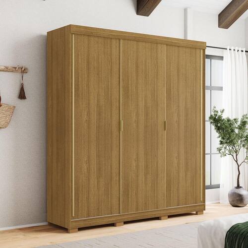Guarda-Roupa 3 Portas Correr Dupla Face 4 Gavetas Porto Nature/Alasca 100% MDF - Vila Rica